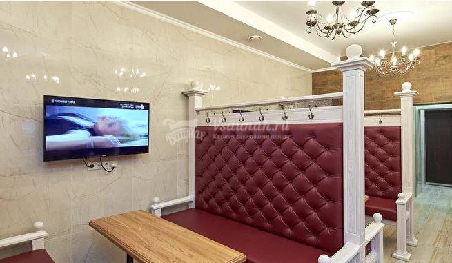 Также Вашему вниманию предлагаются услуги бара (пиво, слабо алкогольные напитки, крепкие алкогольные напитки, блюда на углях, первые блюда, закуски), услуги профессионального массажа, парения, парикмахерской (мужские и женские стрижки, маникюр/педикюр), магазин банных принадлежностей.